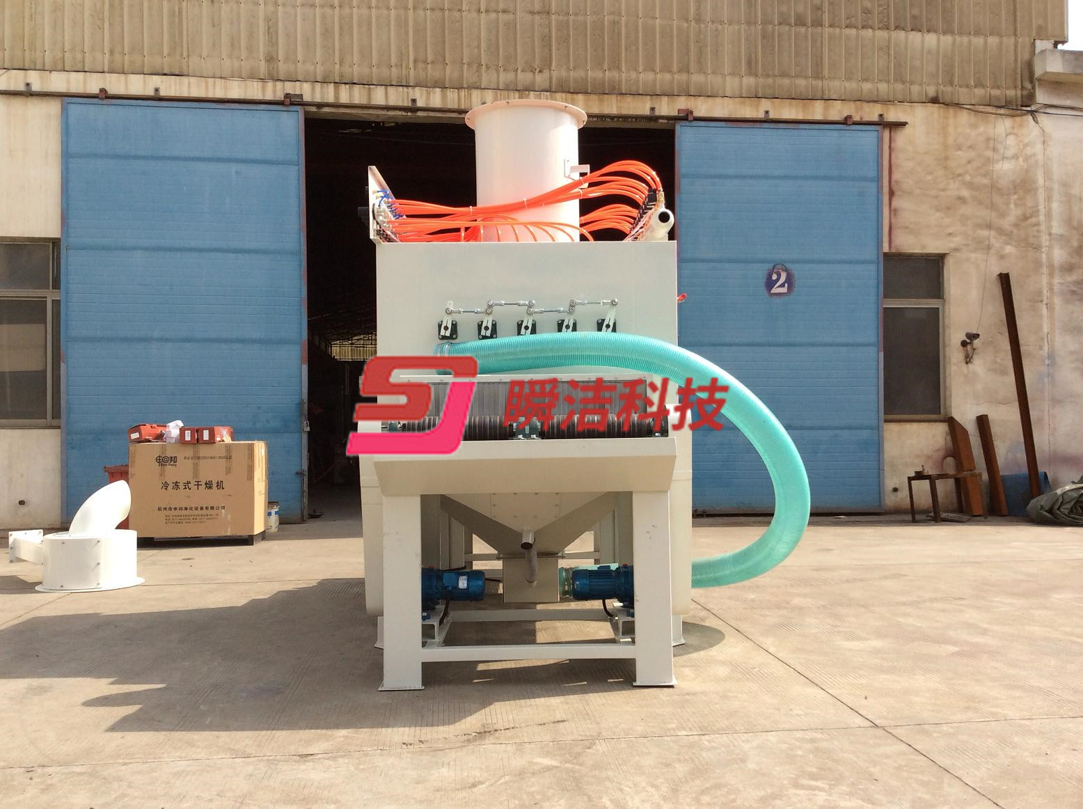 5、配有大型除塵機和特制磨料與粉塵旋風分離器,可分離磨料與粉塵,可減少磨料消耗,環境污染。磨料可自動循環使用。