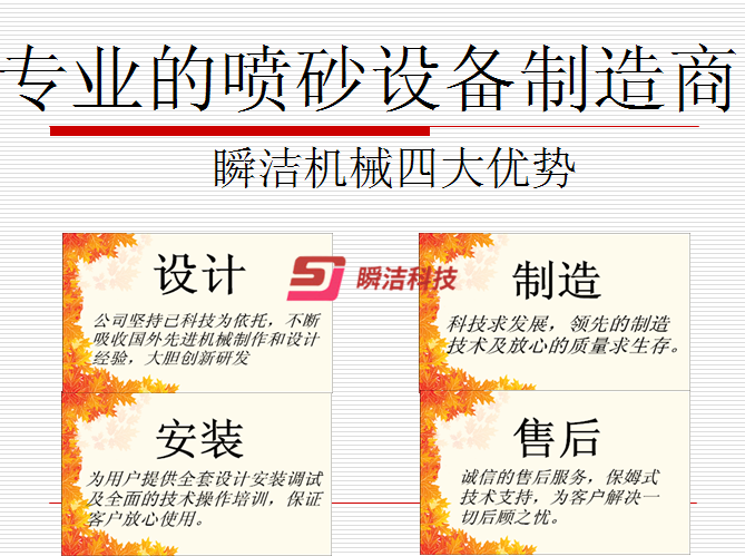 A.用于清理鋼結構、模具、健身游樂器材。玻璃、石碑的雕花、船舶修造、橋梁、礦山、機械、石油管道、水利工程、港口建設等除銹、噴花加工、去氧化皮、毛刺亦可用于噴涂、電鍍前處理工序,以提高涂(鍍)層表面的附著力所有的表面處理