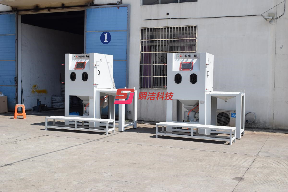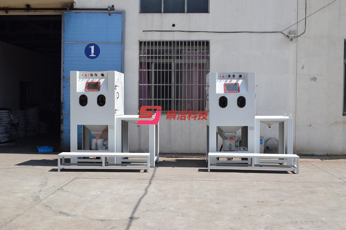 、配備活動臺車,和轉盤,操作時將工件放在轉盤上,然后推入機內即可噴砂作業,操作簡單省力。