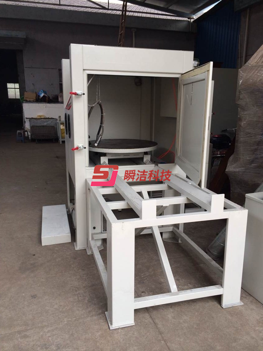 3、配備活動臺車,和轉盤,操作時將工件放在轉盤上,然后推入機內即可噴砂作業,操作簡單省力。