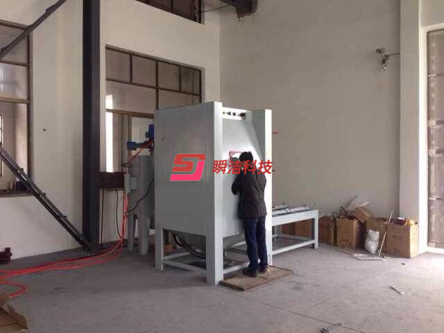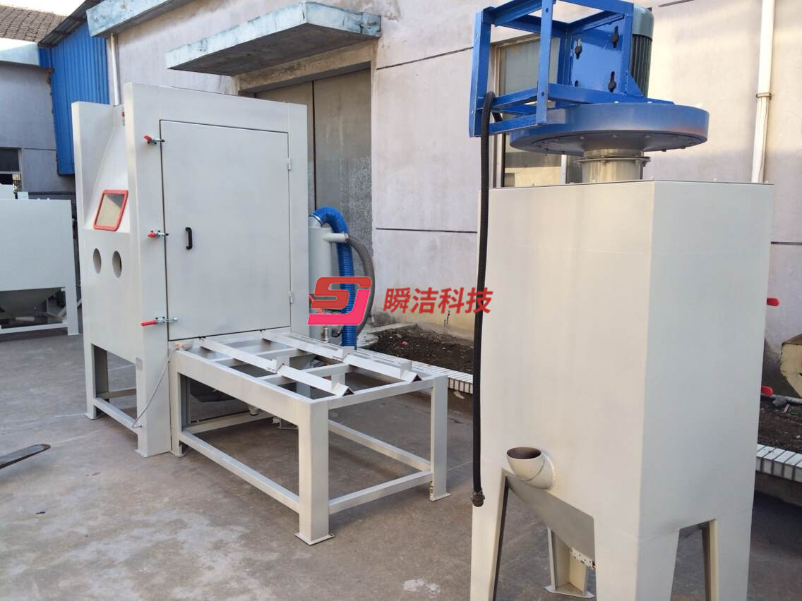 3、配備活動臺車,和轉盤,操作時將工件放在轉盤上,然后推入機內即可噴砂作業,操作簡單省力。