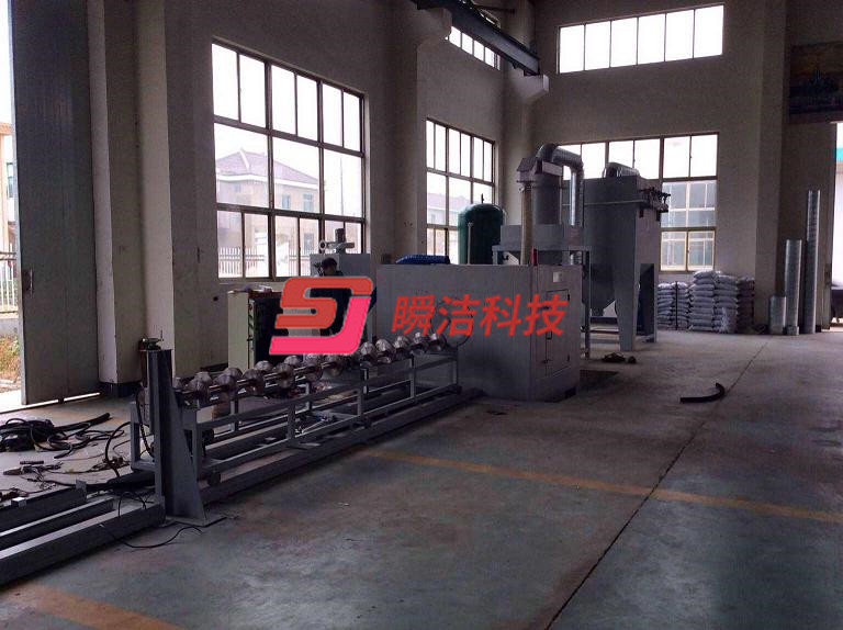 2..鋼管內外壁噴砂清理機適用于大、中、小型鋼管、鋼瓶的表面處理和強化、工件自動旋轉、自動行走 , 工件的運轉速度可根據工件的要求進行及時調整, 可設計成單管、雙管、3管、4管、變異后可清理大型管件、油罐,化工儲運罐鐵路車輛等.
